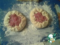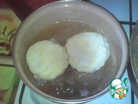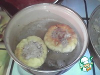 Жарятся беляши на сковороде (сначала стороной вниз, так как мясо индейки должно хорошо прожариться), готовность проверяется с помощью зубочистки, которой нужно проколоть беляш. |