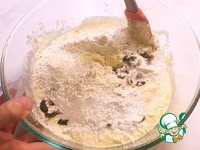 Потом к творожной массе добавляем изюм, пшеничную муку и хорошенько все перемешиваем. |