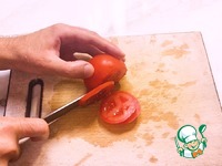 Поверх тунца кладем слайсы томатов, на них кладем веточки тимьяна. |
