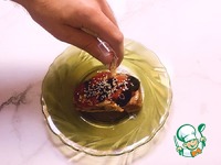 После того как все приготовлено поливаем сверху терияки соусом и посыпаем семенами кунжута. |