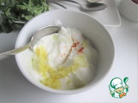 К йогурту добавить измельчённый через пресс чеснок, натёртый имбирь и хлопья чили (здесь чили - порошок). |