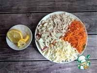 Готовим продукты для салата. Филе куриное и яйца можно сварить заранее и тем сократить время приготовления салата. |