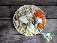 Описание: Простой салат из четырёх ингредиентов: яблока, моркови, курицы и яйца. Для заправки выберете для себя или сметану, или йогурт, или майонез. Приготовьте и он вас порадует своим вкусом осенним денёчком.