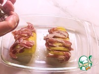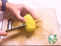 Первым делом картофель нарезаем на шайбы не дорезая до конца. |
