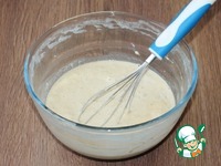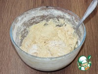 4. Небольшими порциями в жидкую смесь вмешиваем оставшуюся муку 400 гр. |