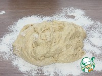 6... выкладываем его на подпыленную мукой столешницу. Вымешиваем тесто, минут 10 и собираем в ком, округляем. |