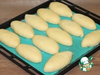 18. Пирожки подошли, смазываем их взбитым желтком (1 желток+1 ст. л. воды). |
