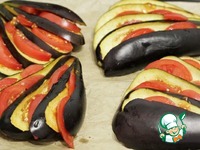 Вложить их между пластинами баклажанов. Поставить противень в духовку, разогретую до 180°С, и запекать баклажаны 10 минут. |