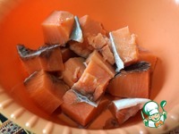 Описание: Для бульона я использовал хребты, хвосты и плавники разной рыбы, небольшую голову горбуши. А в качестве основной рыбы взял семгу, предварительно разделав ее на филе.
