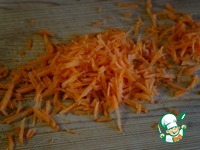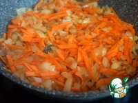 Добавить морковь, перемешать, жарить 5 минут на среднем огне. |