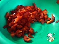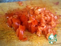 Добавить помидор, перемешать, еще через пару минут влить ложку бульона из кастрюли, немного посолить, накрыть сковороду крышкой, тушить на малом огне 15 минут. Добавить лавровый лист. |