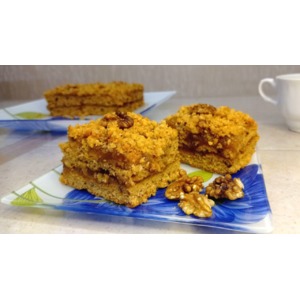 Описание: Предлагаю вашему вниманию поистине осенний золотисный тыквенный пирог. В его основе- пряные коржи с орехами и прослойкой из кисло- сладких яблок. Готовится он очень просто и быстро, без использования яиц и молочных продуктов.