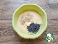 Добавьте в тесто мак и кунжут, перемешайте до равномерного распределения семян. |