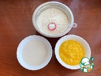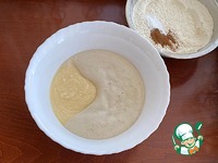 В теплом ( не горячем) молоке, смешайте дрожжи, 2 ч. л. сахара и 3 ст. л. муки из общего количества. Поставьте в теплое место для активации дрожжей. |