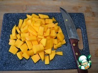 Тыкву чистим, режем кубиками, вкус супа также зависит от сорта тыквы и её сладости. |