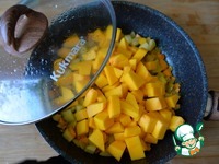 Кладём тыкву на сковроду, обжариваем 5 минут на среднем огне. |
