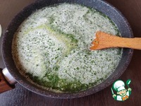 Перец, чеснок, кинзу и бульон отправляем в блендер, либо кухонный комбайн. Тщательно перебиваем. В это время разогреваем сковороду со сливочным маслом. |