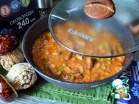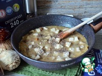 Описание: Сегодня гуляш, почти классика. Из ассорти лесных грибов, с кусочками теста и консервированным зелёным горошком. Рекомендую.