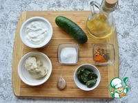 Огурец режу пополам, извлекаю сердцевину с семечками и натираю на мелкой терке. Отжимаю влагу. Специи перетираю в ступке с солью и чесноком. |
