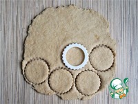 Затем раскатать толщиной около 0,5 см, вырезать кружки. У меня получилось 13 штук, диаметром около 6 см. |