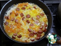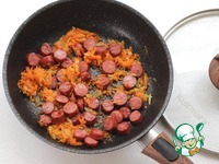 К зажарке добавьте нарезанные копченые колбаски |