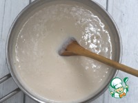 После того как обжарили всю крошку, начинаем варить крем. В сотейник выкладываем все ингредиенты для крема и очень хорошо размешиваем венчиком. |