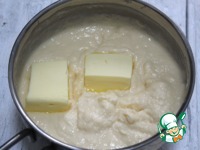 Ставим на небольшой огонь и, постоянно помешивая, доводим до загустения. Добавляем сливочное масло, перемешиваем до однородности, накрываем пленкой в контакт и остужаем до теплого. |