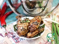 Залить их маринадом, посыпать зелёным луком. Оставить мариноваться на несколько часов в холодильнике. Если маринад не покрывает крылышки, то их желательно несколько раз перемешать их за это время. |