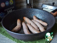 Колбаски обжарить на 1 ч. л. растительного масла, 5-7 минут, огонь выше среднего. Убрать из сковороды. |