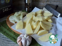 Картофель и лук почистить, нарезать: лук перьями, картофель небольшими ломтиками. |