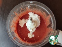 Добавляем творог. У меня мягкий, но можно брать и обычный. Добавляем соль, перец. Пробиваем ещё раз. |
