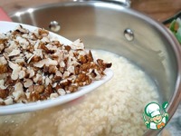 Кастрюлю снимите с огня. Добавьте грецкие орехи. |