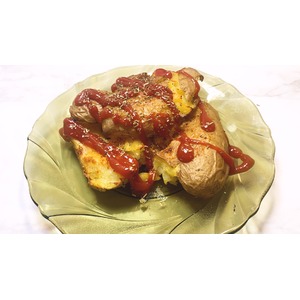 Когда все готово картофель поливаем кетчупом и посыпаем прованскими травами. |