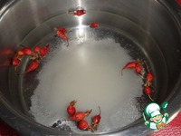В кастрюлю наливаем воду. Добавляем сахар и ягоды шиповника. Ставим кастрюлю на огонь. Доводим до кипения. |