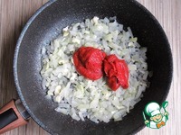 За это время разогреть сковороду с растительным маслом и обжарить мелко нарезанный лук и чеснок. |