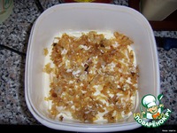 Следующий слой - лук мелко порезать и обжарить на растительном масле, выложить на салфетку, чтоб масло стекло. Майонез и слой крекеров, опять майонез. |