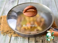 Влить 0,5 стакана воды или мясного/грибного бульона и тушить под крышкой до готовности мяса. |