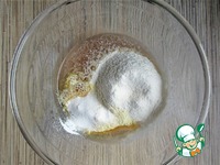 Для теста смешать компот с растительным маслом, сахаром (количество сахара регулируйте по своему вкусу) и солью. |