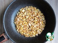 Яблоки очистить и нарезать маленькими кусочками. Обжарить на 1 ст. л. растительного масла, посыпав корицей и коричневым сахаром (количество сахара регулируйте по своему вкусу, у меня минимум). |
