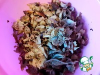 Бортик положить на оставшуюся часть булочки. Во внутрь положить курицу |