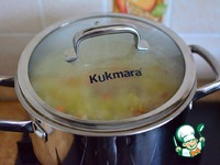 Довести до кипения, если будет пена - снять. Накрыть крышкой и потомить 5-7 минут. |