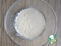 Когда опара увеличится в объеме и появятся пузырьки, можно замешивать тесто. |