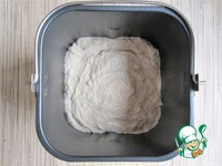 Переложить тесто в форму для выпечки (у меня контейнер хлебопечки). Накрыть пленкой. |