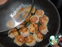 На оставшемся в сковороде масле жарим фрикадельки, на среднем огне, со всех сторон до румяной корочки. Убираем со сковороды. |
