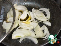Опять-таки на оставшемся масле обжариваем сначала лук, на среднем огне 5 минут. Преимущество сковороды ТМ Kukmara Granit Ultra, что для жарки требуется минимум масла. |