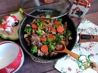 Раскладываем по тарелкам горячее блюдо. Сковорода долго держит тепло. |