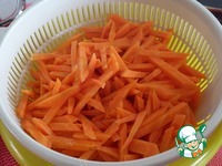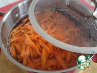 Прошло 10 минут. Морковь откидываем на дуршлаг. |