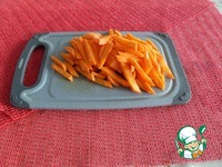 Пока ждем закипания воды, морковь нарезаем соломкой. |