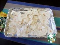 Лаваш нарезать кусочками (треугольниками, ромбами, квадратами) и оставить на 10-15 минут слегка подсохнуть. |