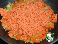 Заливаем чечевицу с овощами бульоном, доводим до кипения, варим на среднем огне 5 минут. |
